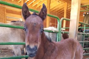 Baby was only a day old when she was found. She had been caught in barbwire fencing and couldn't free herself. So, her mom abandoned her. Once she was rescued and taken to a barn, she was fed Mare's Match milk every 2 hours. Her extremities were extremely cold and she suffered from hypothermia. She was kept wrapped in a blanket until she stabilized. Today, Baby is a pretty 3-year old filly who loves hanging out with her three older brothers, who are not always sure that's such a good idea.